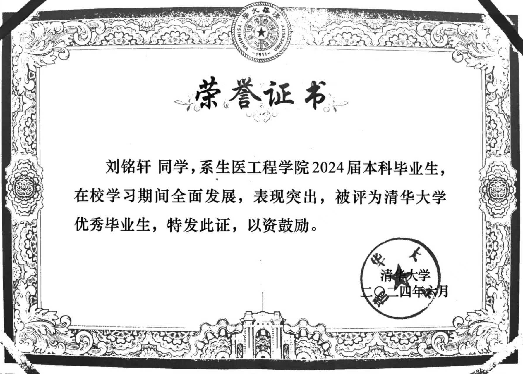 - [Certificate] 2024 Outstanding Graduate Award (Top 2%), Tsinghua University