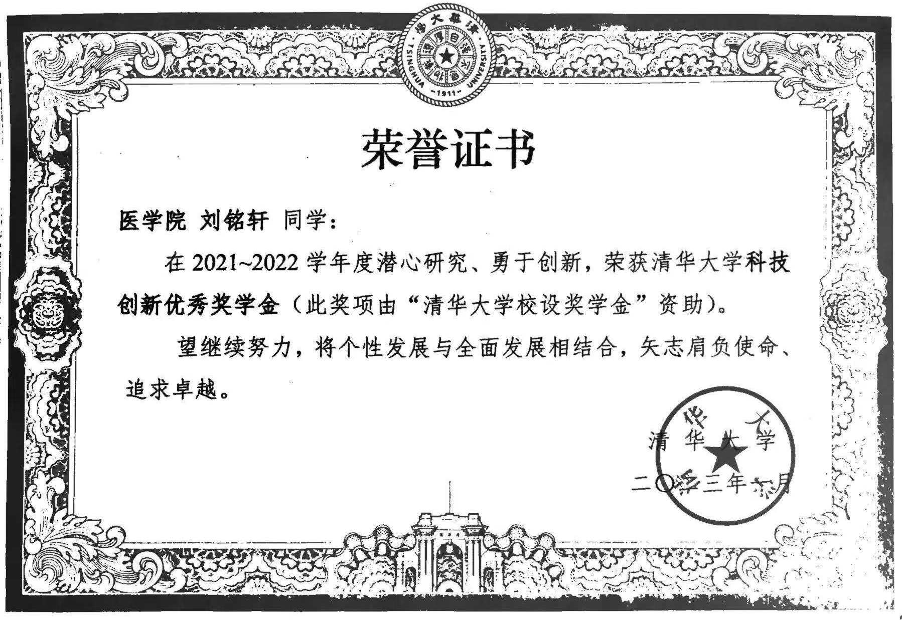 - [Certificate] 2022 Scholarship for Science and Technology Innovation Excellence, Tsinghua University